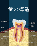 まずは歯の構造を見てみましょう。歯は、硬い1つの塊で出来ているわけではなく、3層構造になっています。前歯も奥歯も歯の形は違っていても、構造は同じです。
